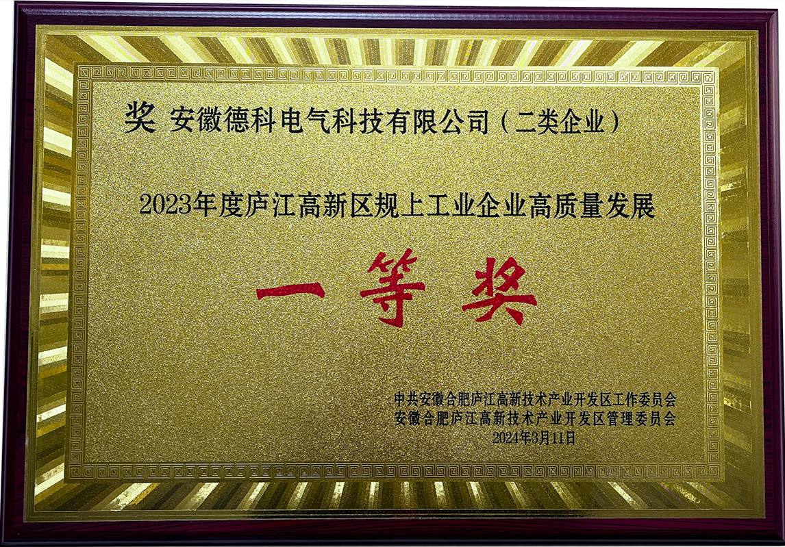 会上宣读了2023年度庐江高新区高质量发展相关奖项,欧冠联赛竞猜电气荣获《2023年度庐江高新区规上工业企业高质量发展一等奖》。县领导为各获奖企业颁奖并表示祝贺,同时勉励企业2024年再创佳绩。