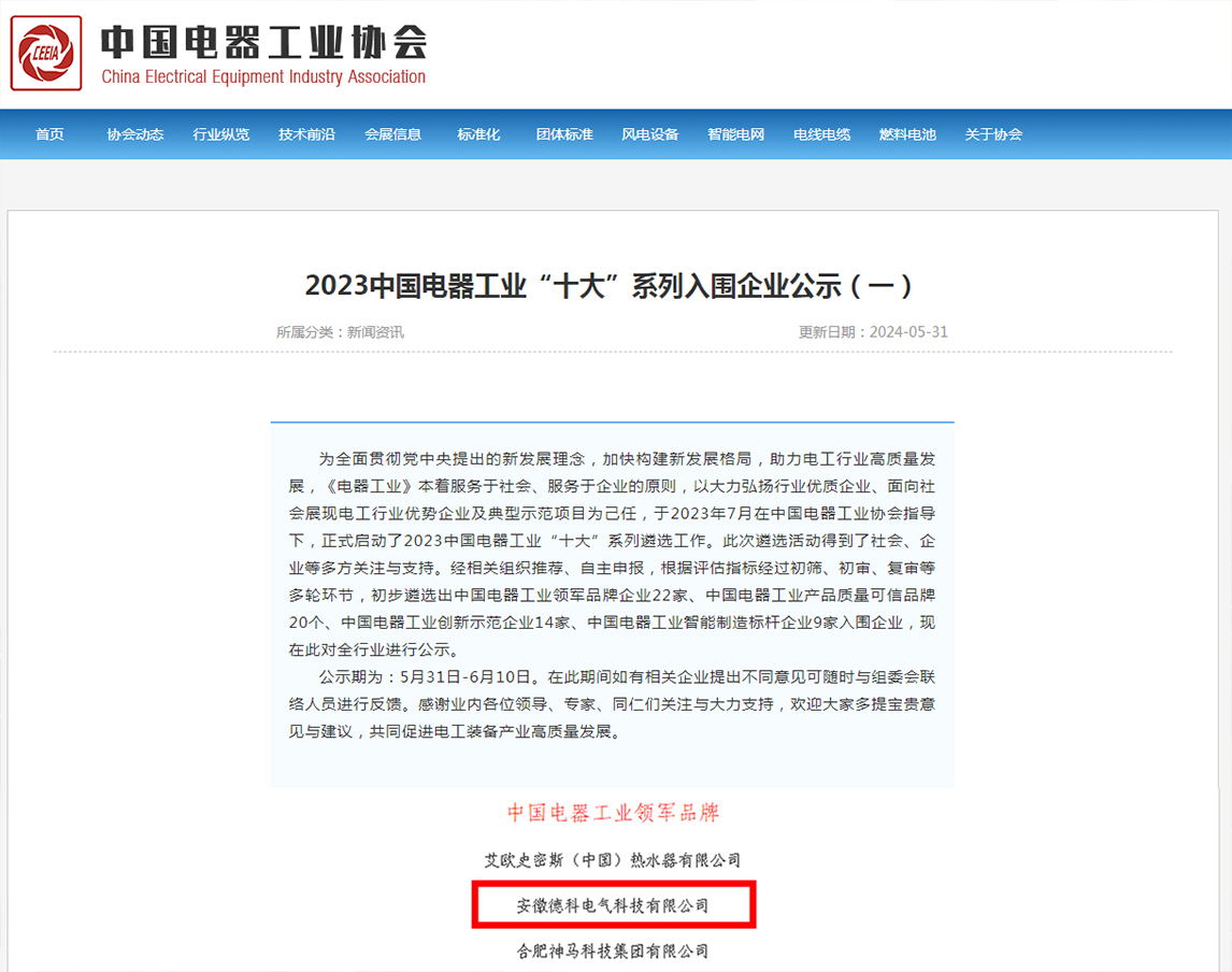 为全面贯彻党中央提出的新发展理念,加快建构新发展格局,助力电工行业高质量发展,2023年7月,《电器工业》在中国电器行业协会指导下,正式启动2023年中国电器行业“十大”系列遴选工作。经过初筛、初审、复审等多轮环节,欧冠联赛竞猜电气成功入选“中国电器工业领军品牌”名单。